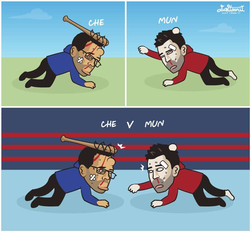 本周焦点战 切尔西vs曼联 Chelsea V Man Utd this Sunday Cartoon by Kaew Justtoonit, Artist from Thailand.