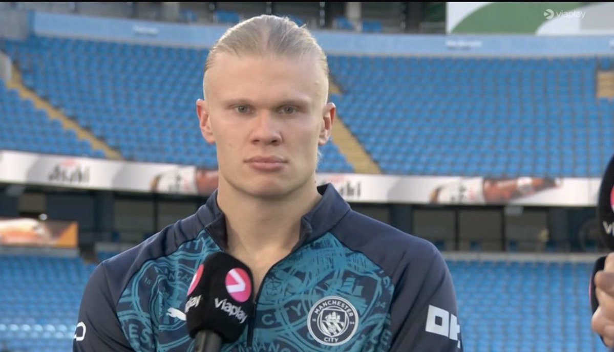 英超第33轮,曼城主场2-1击败阿森纳,赛后,哈兰德在接受Viaplay Football的采访。